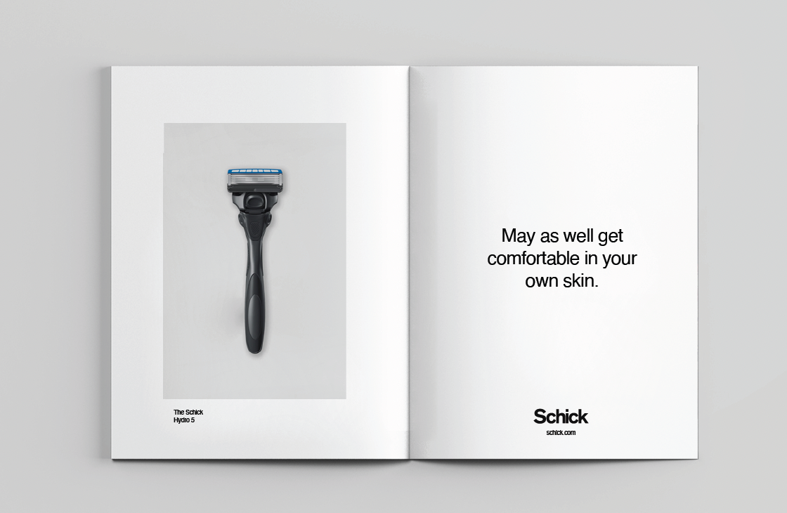 Remember Schick? It was the razor you probably saw lying around your grandfather's cabinets. The brand was founded in 1925 but faded into the relative obscurity of just a few big box retail chains and hadn't stood for anything in approximately forever. I wanted to give the brand a new POV on individuality. Be you. No one else can started as a simple tagline but gave way to a clean execution with plenty of personality.